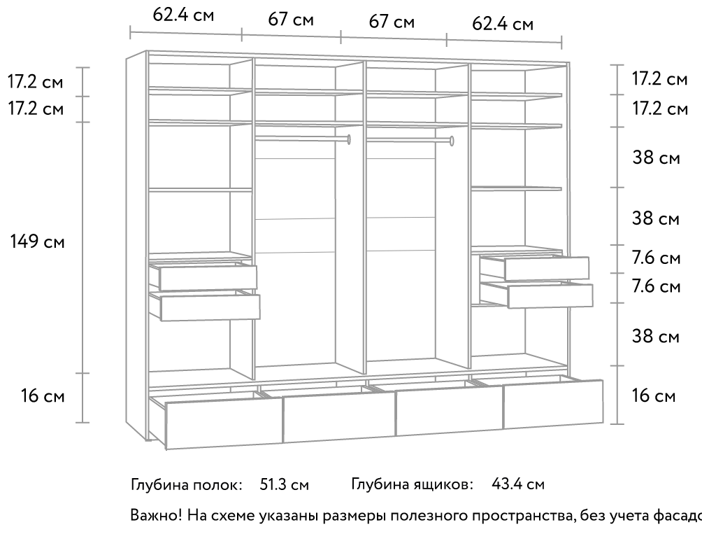 ВАЖНО! При глубине шкафа-купе менее 60 см / распашного шкафа менее 50 см, устанавливается выдвижная штанга.
