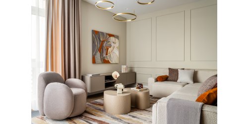 Угловой диван Спейс от divan.ru в гостиной — место притяжения всей семьи. Он удобный и стильный, с мягкими и обтекаемыми формами. Обожаю divan.ru за огромное количество тканей и расцветок — это крайне важно при детальной проработке проекта с обилием полутонов и фактур.
