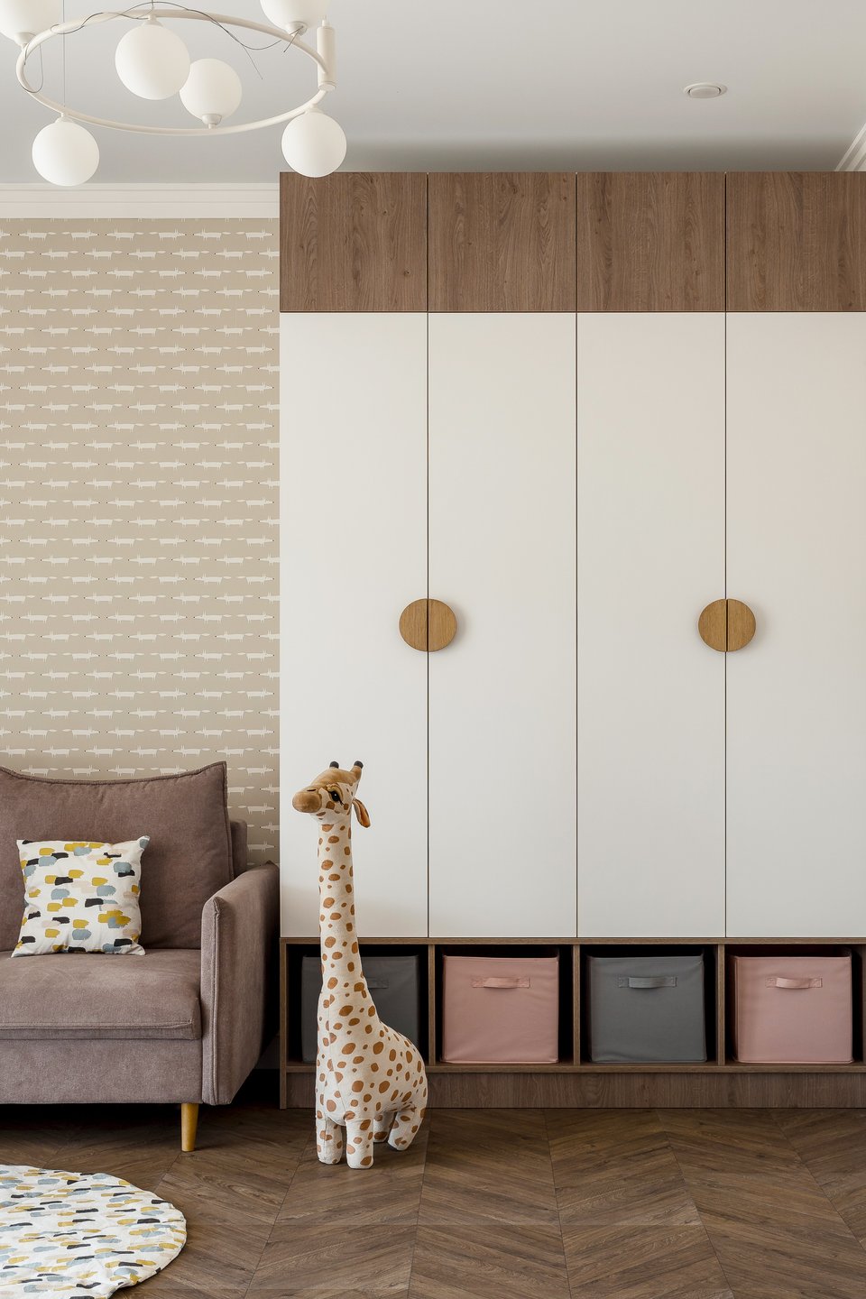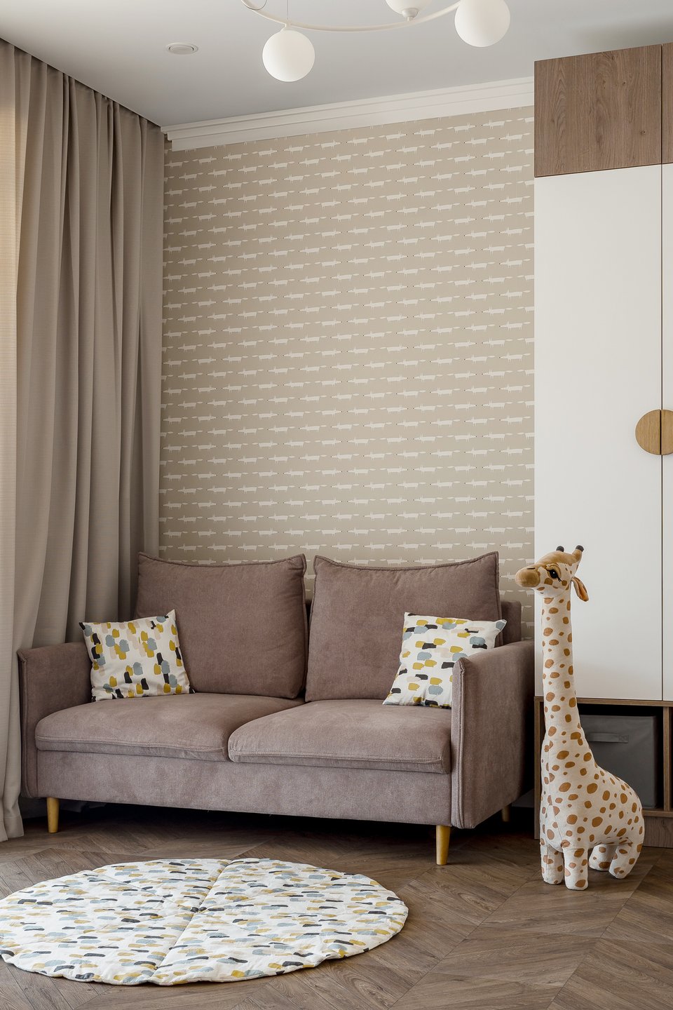 Обратите внимание на рисунок на обоях — маленькие лисички создают в комнате атмосферу непринужденного детства.