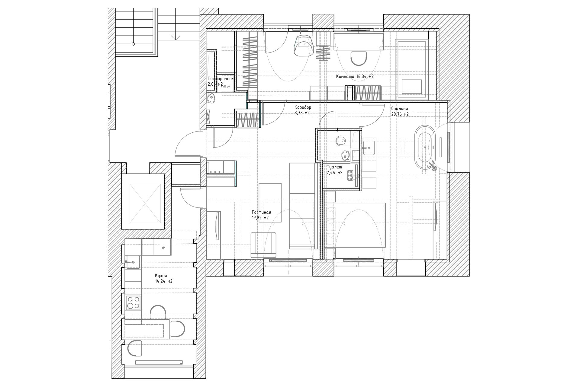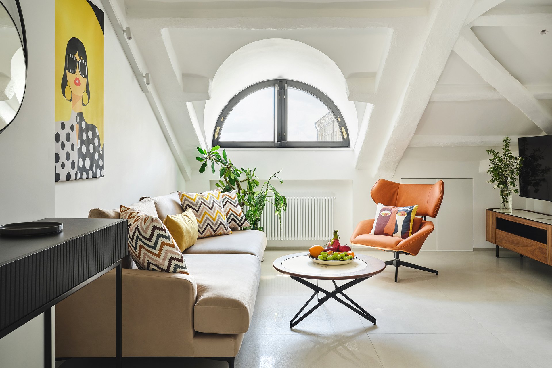 - Универсальный дизайн, который понравился бы большинству потенциальных покупателей (мансардная квартира будет продаваться с готовой отделкой и наполнением).