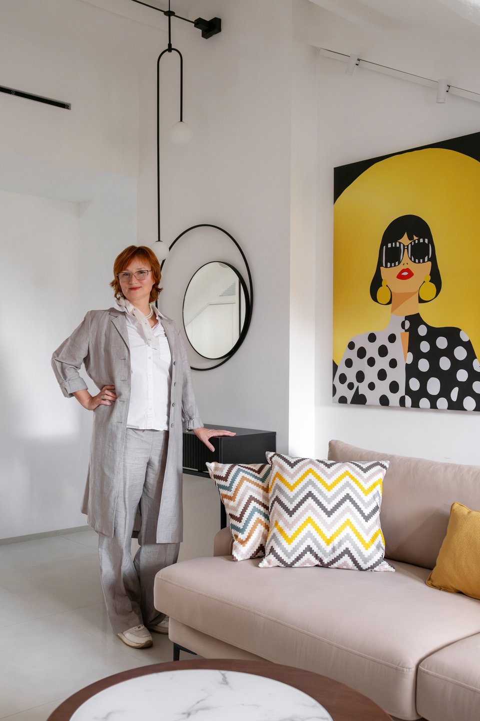 «Мой преподаватель в институте говорил: "Когда участок под застройку — квадрат или прямоугольник, это не будит фантазию. Ограничений нет — делай все, что угодно. А вот когда он сложный по конфигурации, когда есть овраг, или наоборот, гора — тут-то и начинает работать голова", — вспоминает дизайнер Дарья Шатилова. — Так получилось и с этой мансардой. Это тот случай, когда сотни раз прибегаешь, измеряешь, пробуешь… Как сделать светло, но чтобы свет не бил в глаза при скошенных потолках? Как так развести канальное кондиционирование, чтобы максимально сохранить высоту потолков? В этом проекте продумана буквально каждая деталь».