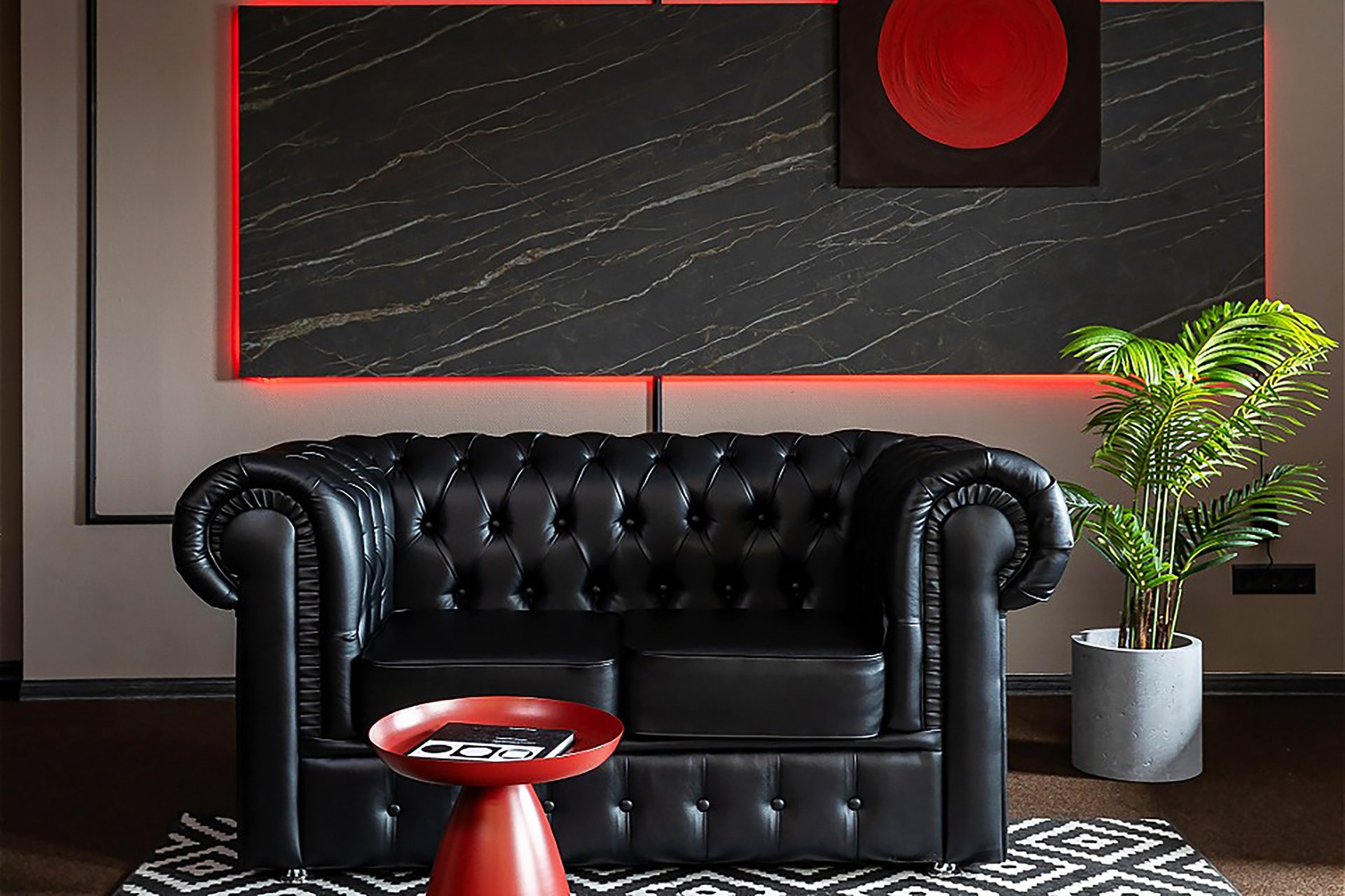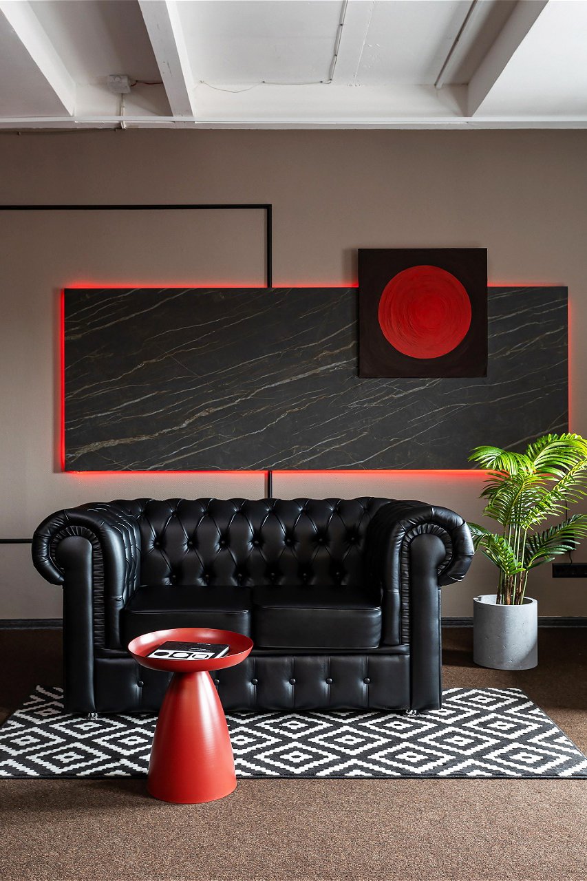 «Сроки были сжаты, как это обычно бывает в коммерческих проектах — заказчику важно было запуститься как можно быстрее, — рассказывают дизайнеры. — Бюджет тоже был ограничен, поэтому приходилось искать баланс между стильной картинкой и практичными решениями. Сложность заключалась в том, что интерьер должен быть одновременно узнаваемым, но при этом универсальным — под разные форматы контента».