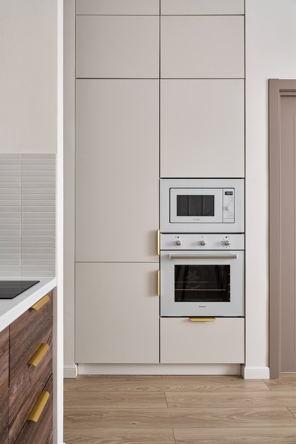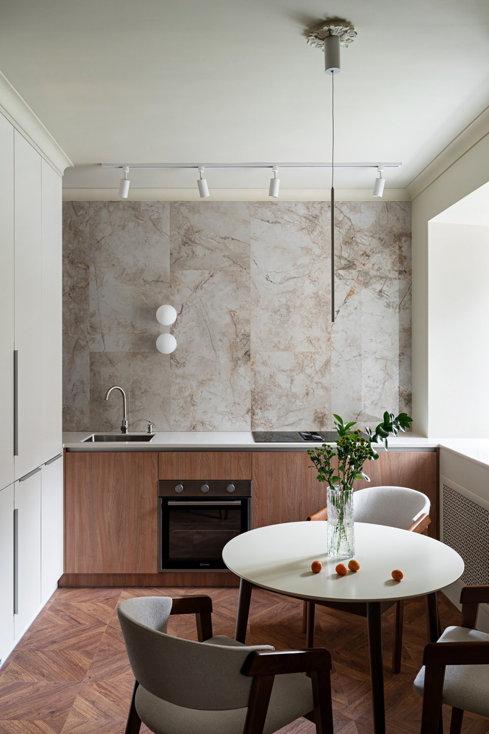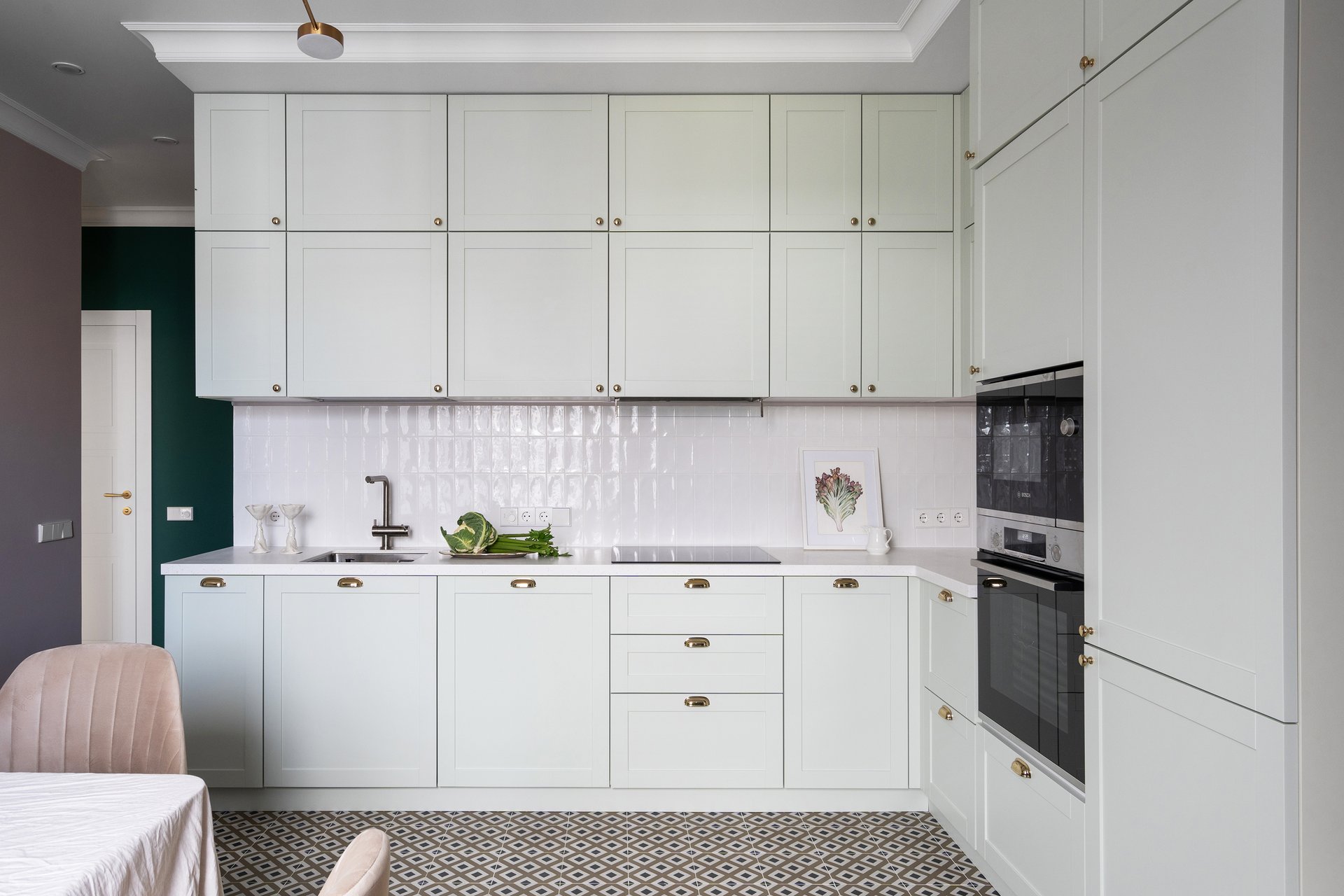 На фото: дизайн классической кухни в светлых тонах в питерской евротрешке 58 кв.м. Дизайнер: Илона Ореховская; архитектор: Екатерина Лоскутова; декоратор: Нина Симонова; фотограф: Маргарита Низамова