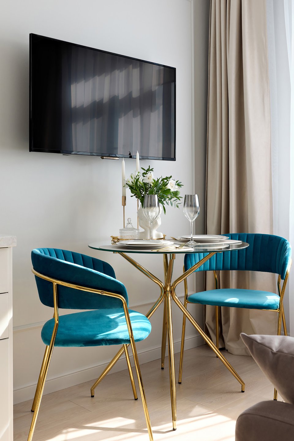 - На фотографии 2: евродвушка 35 кв.м в г. Москве. В кадре стол Дилон от divan.ru. Дизайнер и стилист: Элина Мусина; фотограф: Константин Пырьев