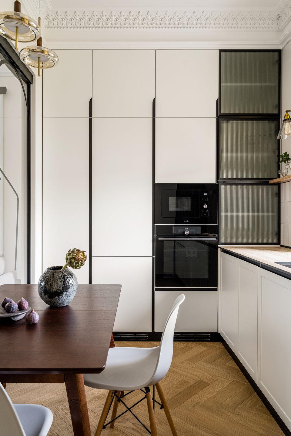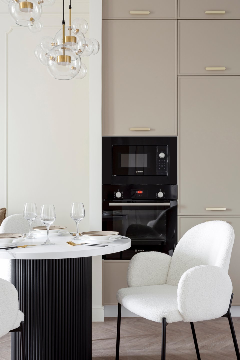 Детали создают настроение, поэтому для интерьера классической кухни в светлых тонах они особенно важны.