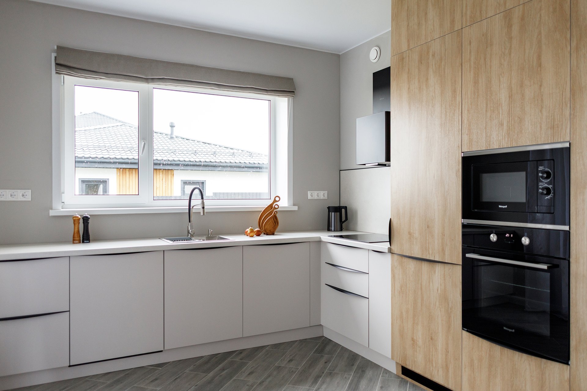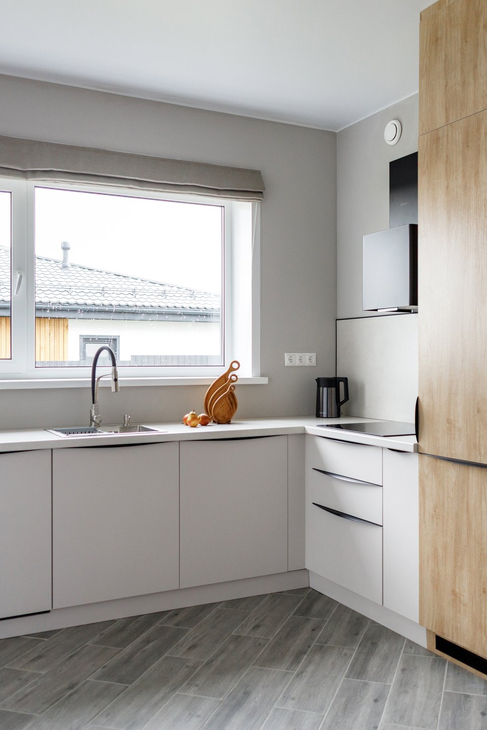 «Сильные стороны объекта, которые выделяют дом на арендном рынке: окно около мойки на кухне (мечта каждой хозяйки), наличие веранды, постирочной комнаты и гардеробной, — рассказывает Анна. — Из минусов: не везде хватало розеток, но получилось добавить их только в зоне кухни и постирочной. В других комнатах это было сделать невозможно — пришлось бы много шпаклевать и перекрашивать. Перепланировку не делали, все зоны оставили на своих местах. Отделку от застройщика тоже не меняли».