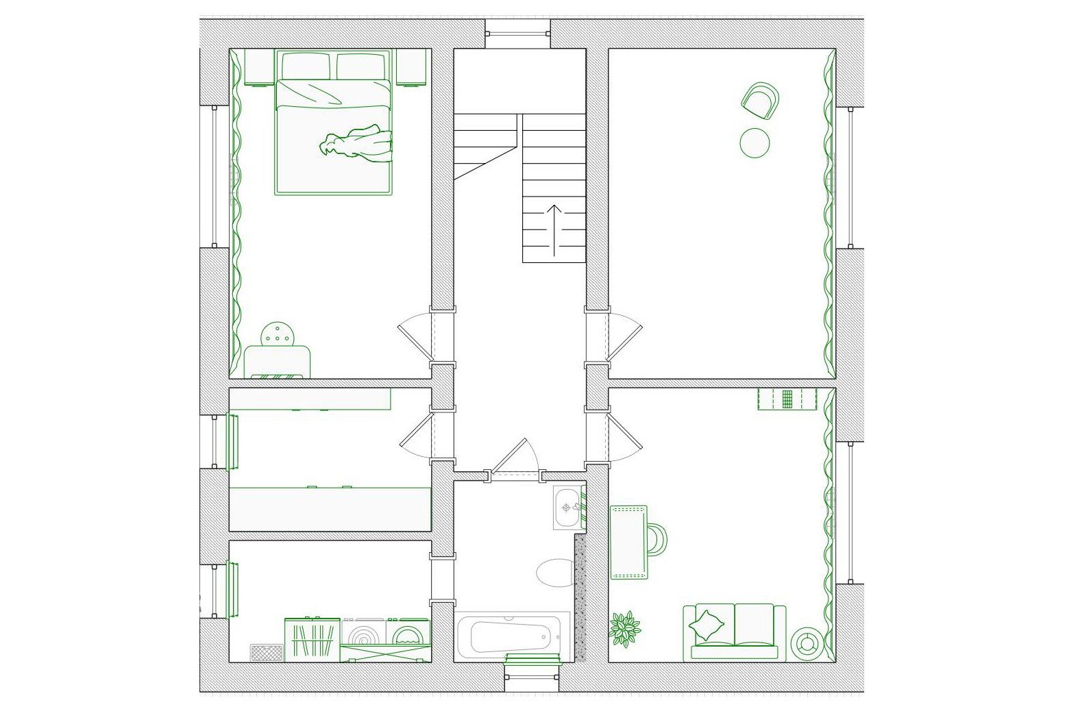 Еще одна комната на втором этаже осталась свободной. Ее назначение определят будущие арендаторы — это может быть детская, второй кабинет или еще одна гостевая спальня.