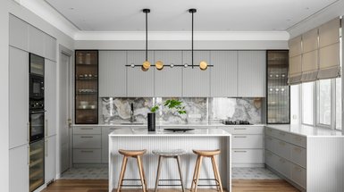 Почти вся мебель выполнена под заказ по эскизам автора. Диван с рисунком гусиная лапка отлично вписался в созданный интерьер. Мы долго выбирали ткань для дивана. Важно было найти что-то спокойное, но в тоже время с красивым рисунком. В моменте подбора ткани родилась такая идея. Мы хотели, чтобы раскладка плитки пересекалась незаметно с рисунком ткани дивана. И мы нашли у компании Диван.ру именно то, что нам нужно. Как сказал менеджер магазина Диван.ру, мы первые, кто заказал диван с такой тканью. Пришлось, конечно, ждать больше, чем если бы мы выбрали стандартную комплектацию. Но ожидание оправдалось. Заказчики были довольны.