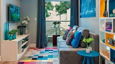 - На фото 3,4: интерьер комнаты в квартире 36 кв.м, ЖК «Ариосто». Дизайнер: Анна Пелипчук; стилист: Нина Симонова; фотограф: Дмитрий Терентьев