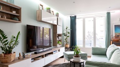 - На фото 1: интерьер гостиной в квартире 87,5 кв.м в г. Санкт-Петербурге. В кадре диван Порту от divan.ru. Дизайнер: Анастасия Березинец, студия At Home Interior; фотограф: Наталья Мавренкова