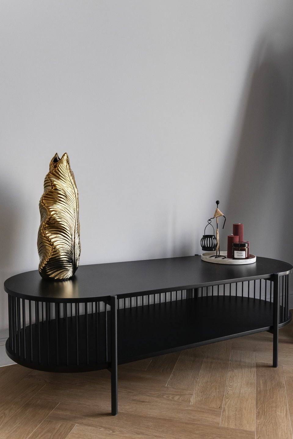 Центральное место в кухне-гостиной занимает диван Риббл от бренда divan.ru. Его обтекаемые формы подчеркивают современный стиль интерьера и располагают к комфортному отдыху. В зоне ТВ стоит открытая тумба Харис.
