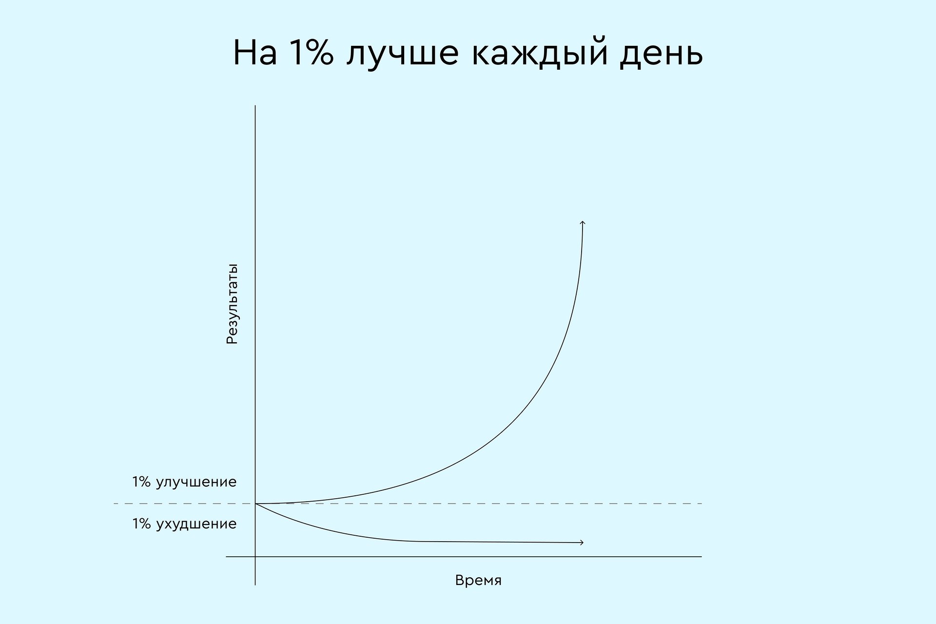 - Улучшение всего на 1 % каждый день в течение одного года дает в качестве результата версию человека, улучшенную в 37 раз.