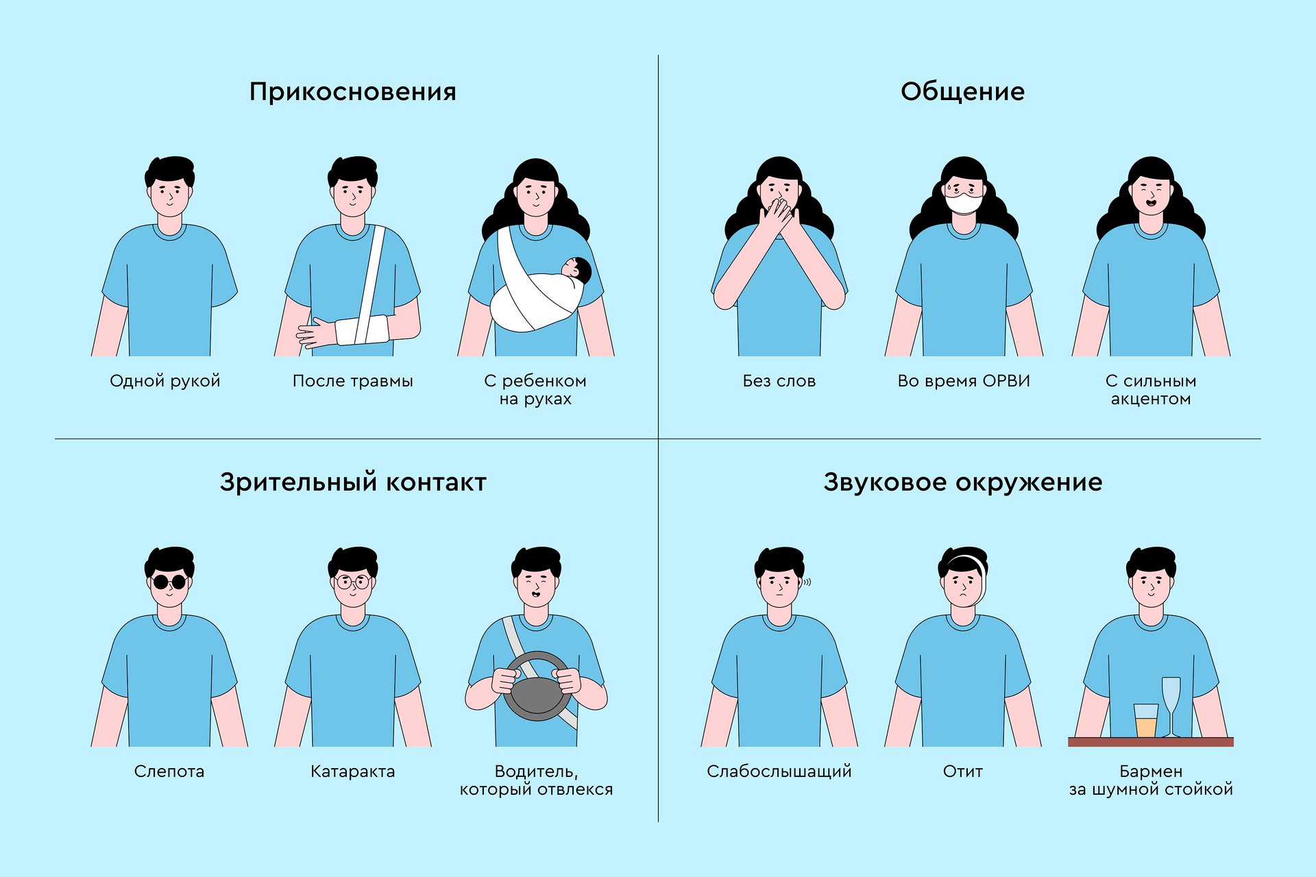 Если проектировать продукт в такой парадигме, он учтет потребности не только «мобильных» и «тотально обездвиженных» людей, но и людей с разными возможностями, поведением, мотивацией.