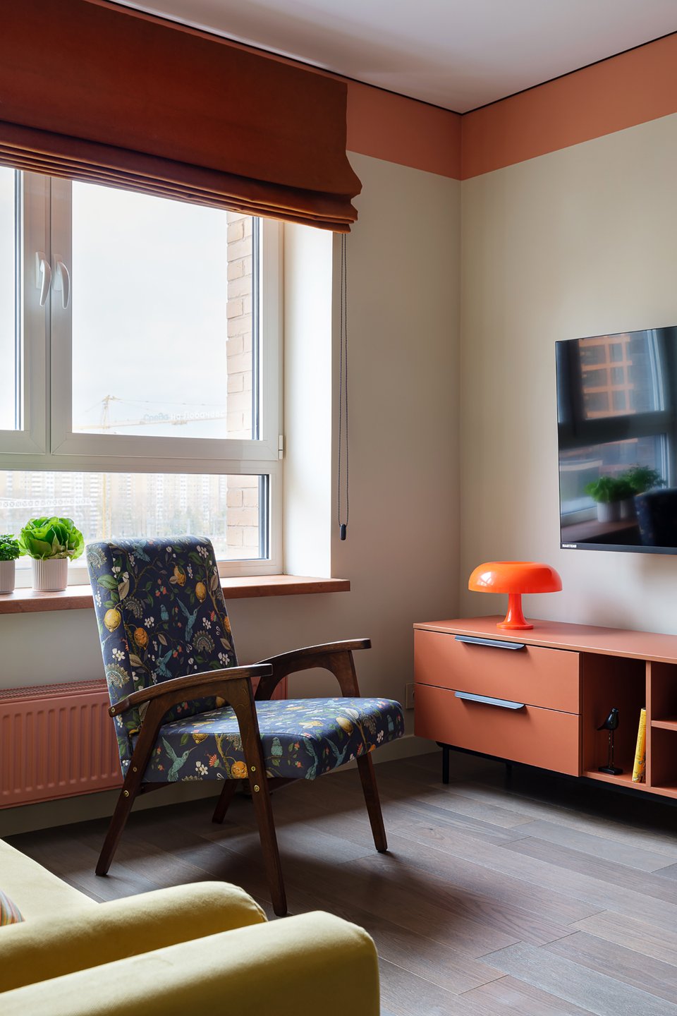 - На фото 3: однушка 36 кв.м в г. Москве. Дизайнеры: Ирина Примак и Анна Кудрина; фотограф: Егор Кодяков
