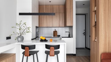 Владелец этой двухкомнатной квартиры, студент-холостяк, видел свой будущий интерьер в серой или черной цветовой гамме. Темный дизайн все же пришлось «смягчить» фактурой дерева и разными сценариями теплого света. Посмотрим, что получилось.
