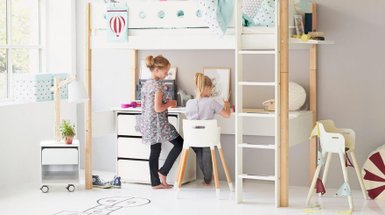 - Кабинет для работы или хобби: стол, стеллаж, полки, тумба, офисный стул.