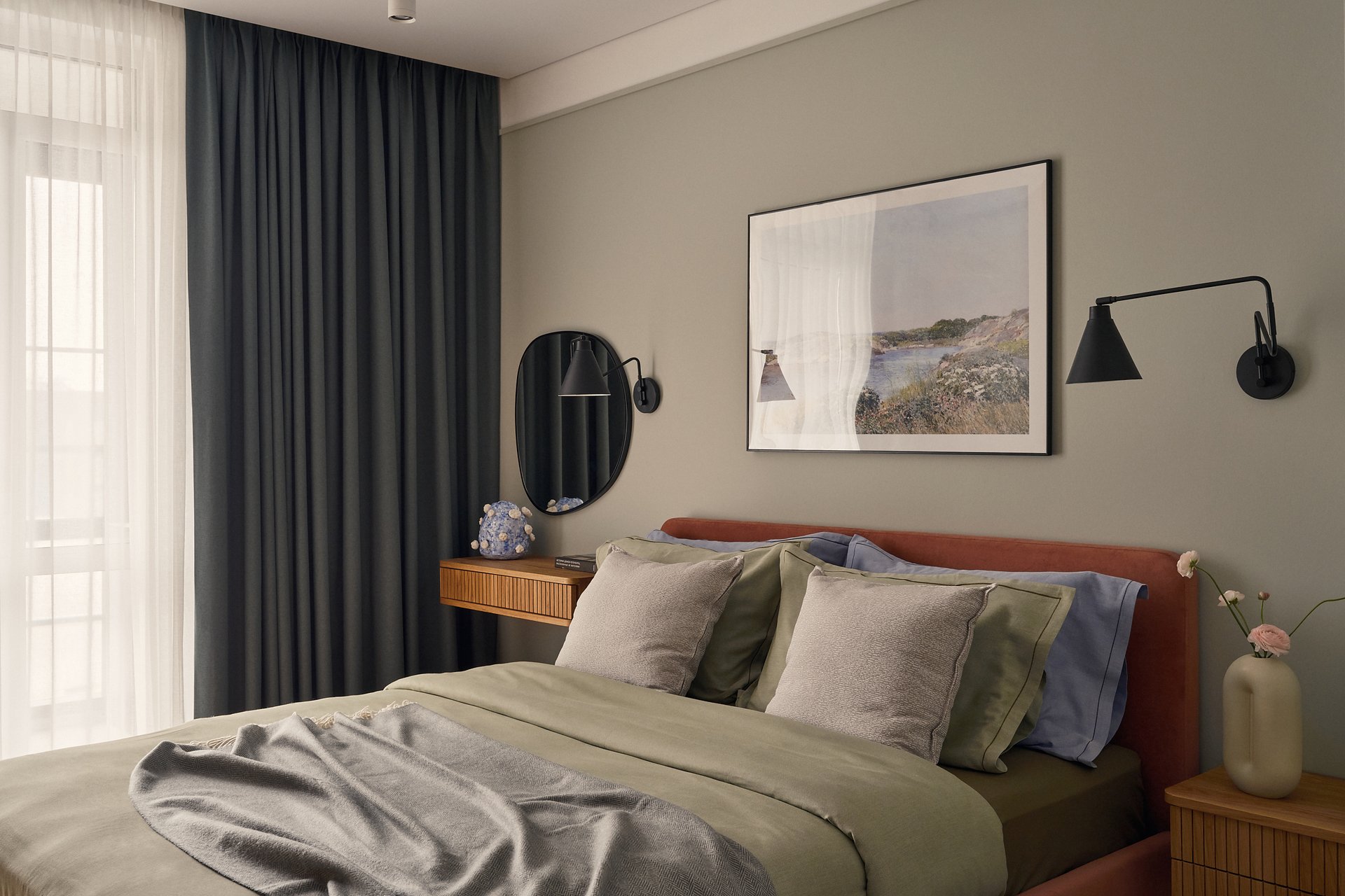 Яркие акценты больше подходят для весеннего и летнего периодов, в то время как осенью хочется чего-то более глубокого и обволакивающего. Терракотовый, горчичный, кофейный, насыщенный зеленый — эти оттенки наполнят пространство ощущением уюта и тепла.