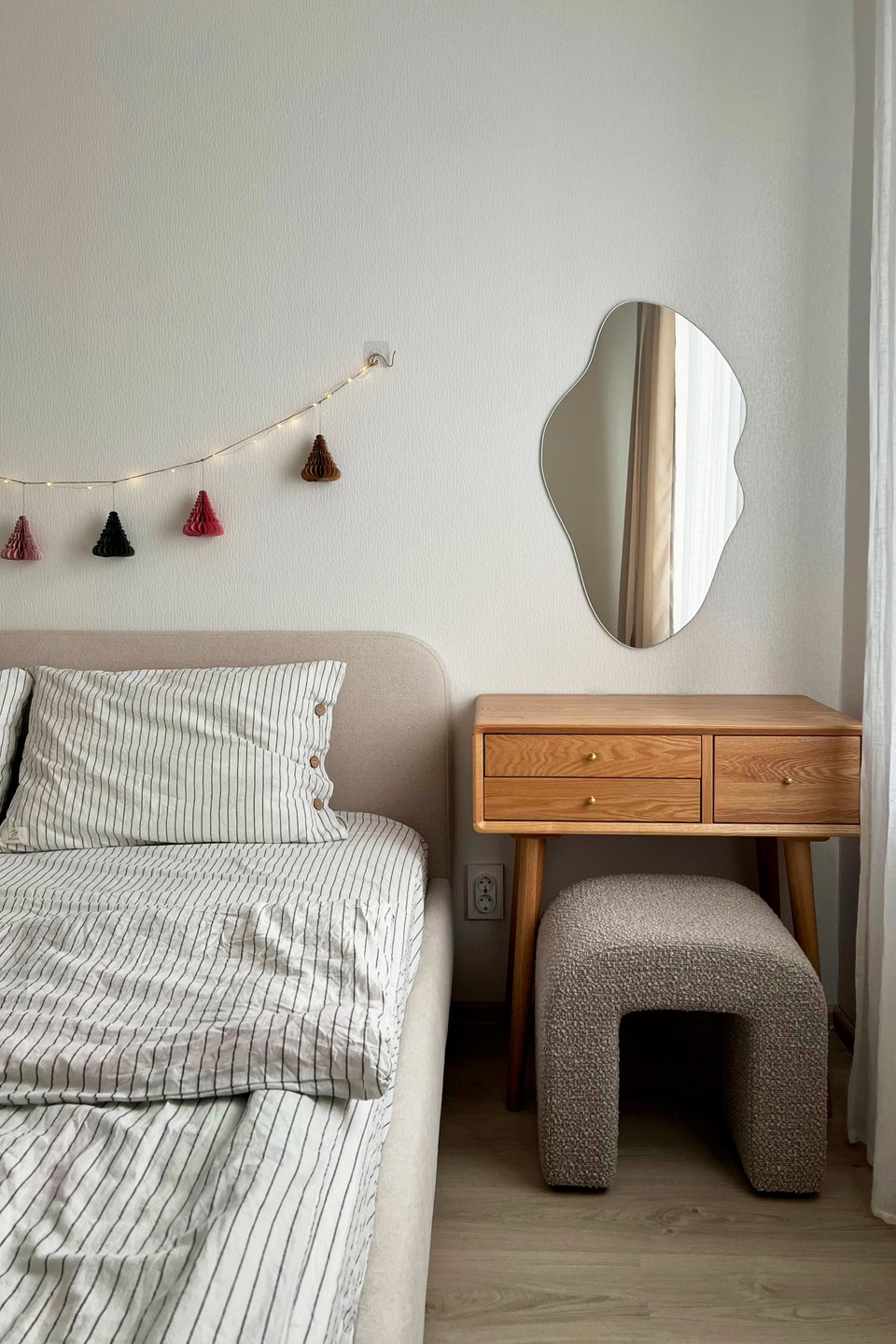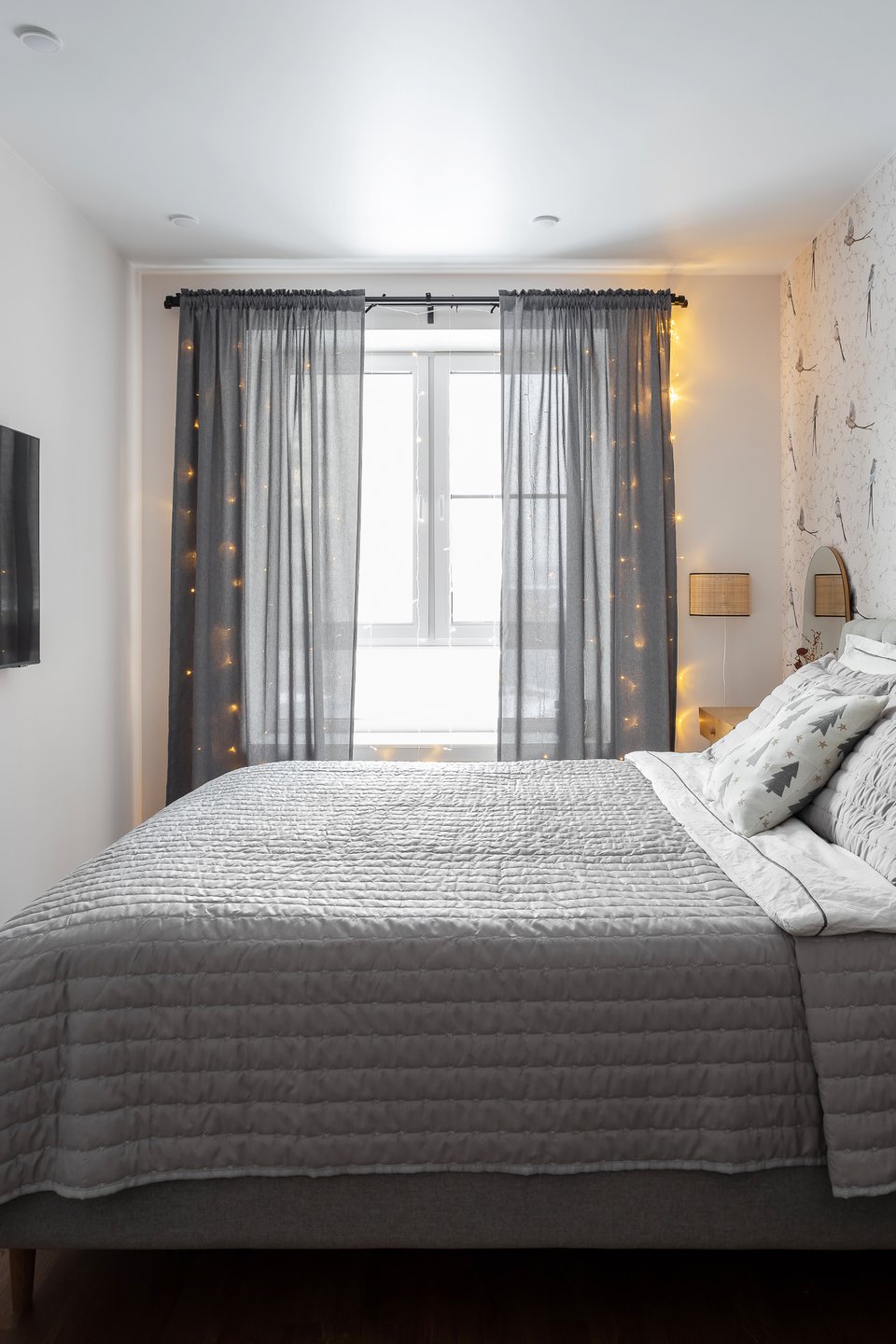- На фото 4: интерьер спальни в квартире 33,7 кв.м в г. Екатеринбурге. В кадре кровать Лайтси от divan.ru. Рум-тур, героиня и автор фото: Айгуль Шарипова