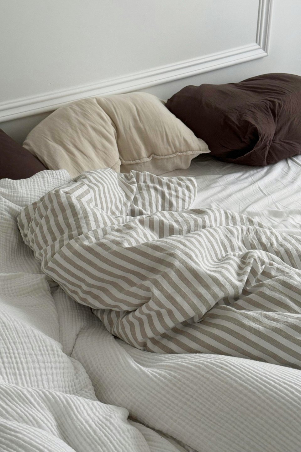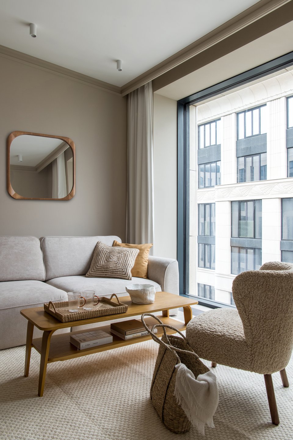 Натуральность важна не только в цветах, но и в текстурах. Шерсть, вельвет и лен дают приятные тактильные ощущения и не создают статического электричества — комфорт ощущается даже в мелочах.