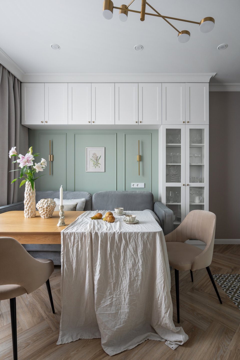 - На фото 4: интерьер кухни-гостиной в квартире 86 кв.м в г. Звенигороде. Рум-тур, героиня: Анастасия (@anastasia_art_pastel, @scandi_is_here); фото из личного архива героини