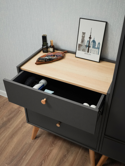 Тумбы с откидным фасадом и вместительные шкафы воплотят в жизнь сдержанный холостяцкий интерьер или просторное место для хранения, которого хватит на всех членов семьи. Просто найдите подходящие формы и цвет!