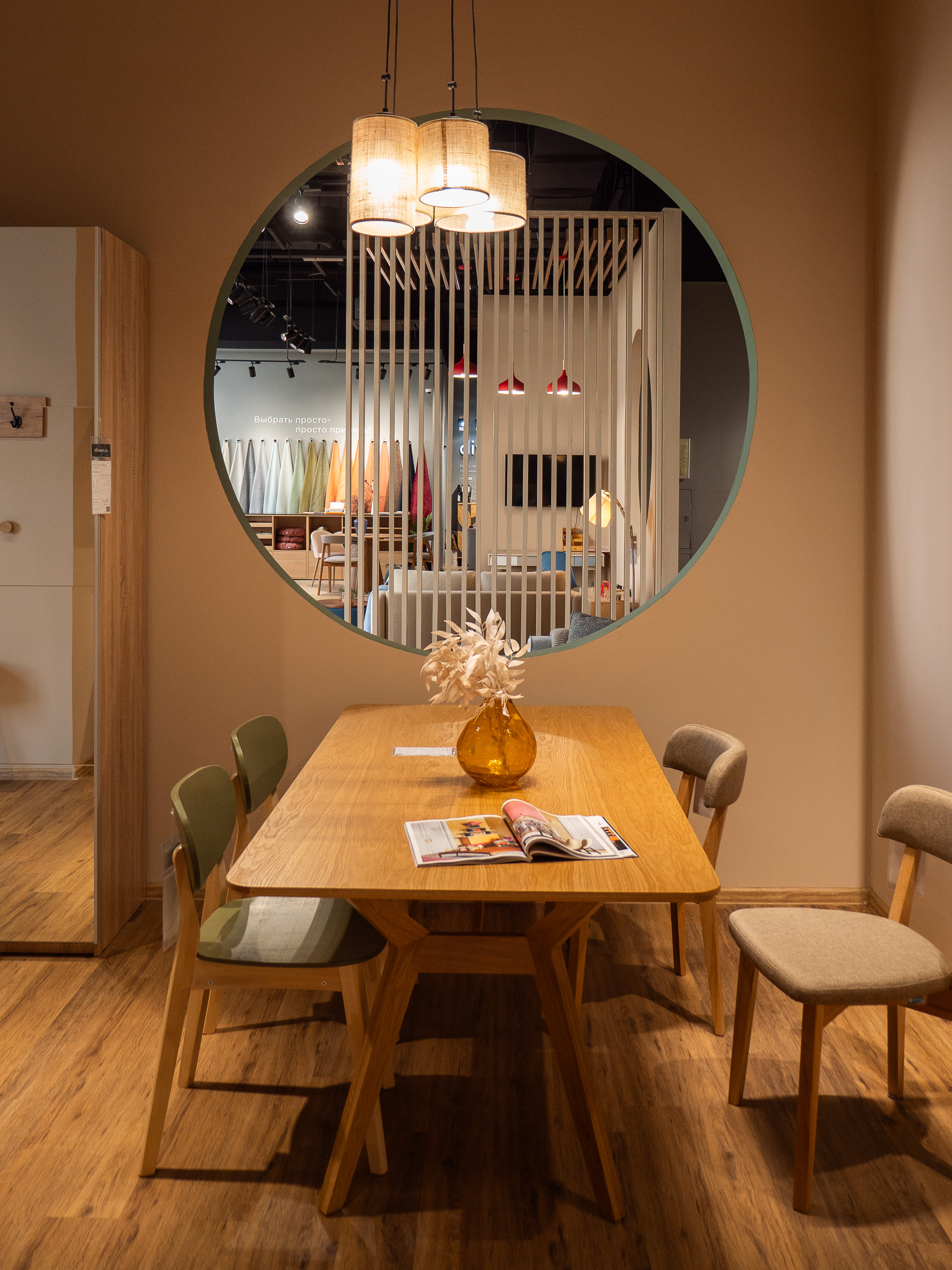 Наши шоурумы — это не только место, где можно выбрать и купить качественную мебель, но и оформленное пространство для вдохновения: готовые интерьеры комнат, яркие витрины, зона трендов.