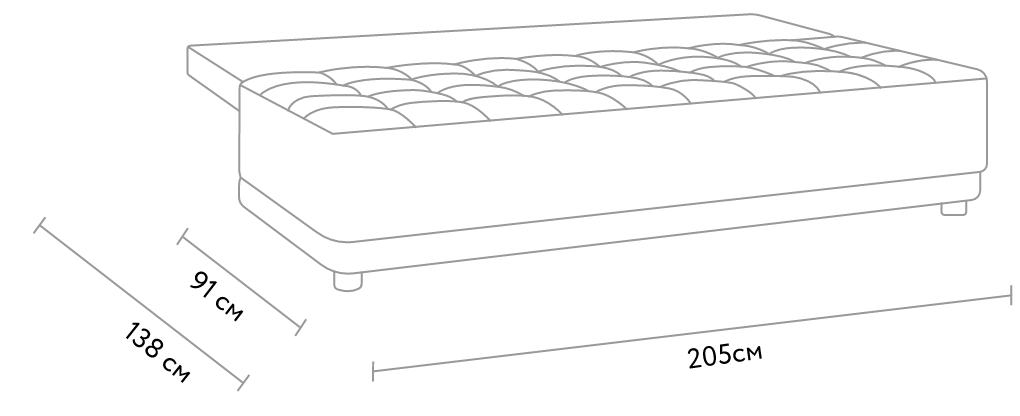 Спальное место: Длина 205 смхШирина 138 смхВысота 43 см