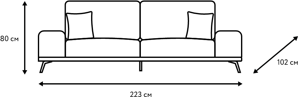 Основание расположено немного ниже обычного, поэтому на диване особенно удобно отдыхать полулежа. Модель не раскладывается, но увеличенная глубина сиденья позволяет организовать просторное спальное место для одного человека.