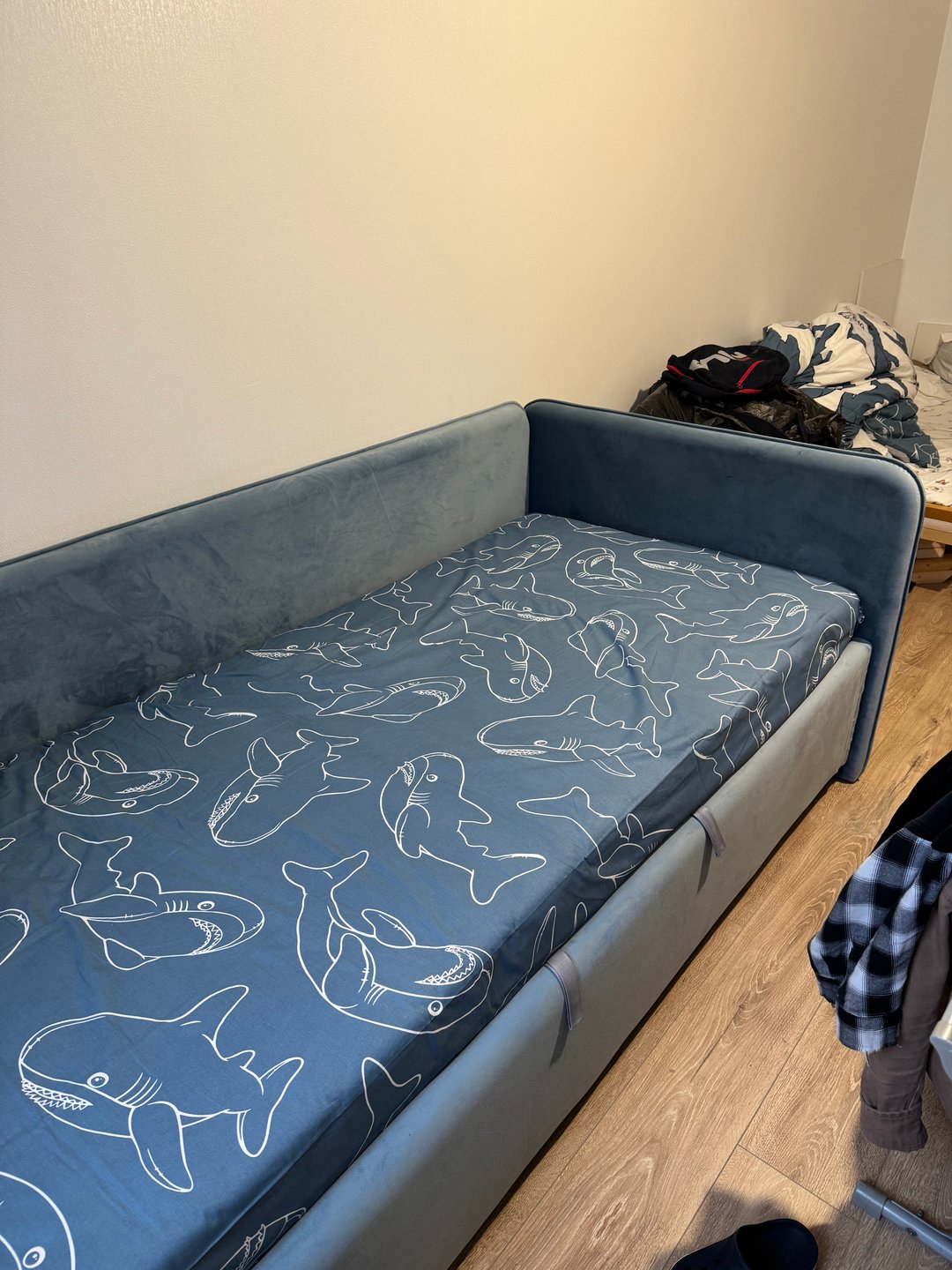 Обновляем мебель.Пришла первая кровать для ребенка. Доставка супер, все четко по времени. Муж собрал сам с сыном за 2 часа.Понятная инструкция прилагалась. Сама кровать супер. Мягкая, добротная, качественная, красивый голубой цвет.Мы взяли с ящиком для белья. В самой кровати подъемный механизм, справится и ребенок.