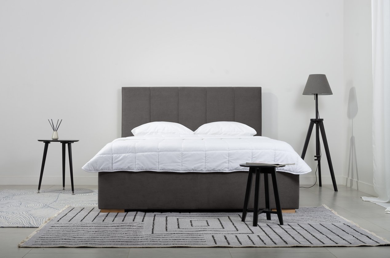 Кровать «Шерона» выполнена в традиционном европейском стиле, требовательном к эстетичности облика и практичности конструкции. Правильные прямоугольные формы, приятная на ощупь и красивая на вид фактура обивки, лаконичная отделка строчкой – это универсальная модель, которая не выходит из моды!