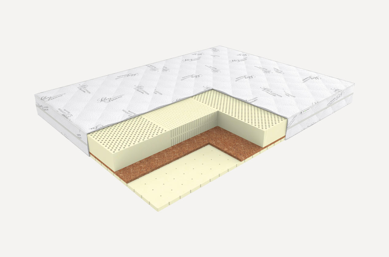 Беспружинный матрас, в котором многозональный латексный блок заменяет пружины и создает максимальный ортопедический эффект.