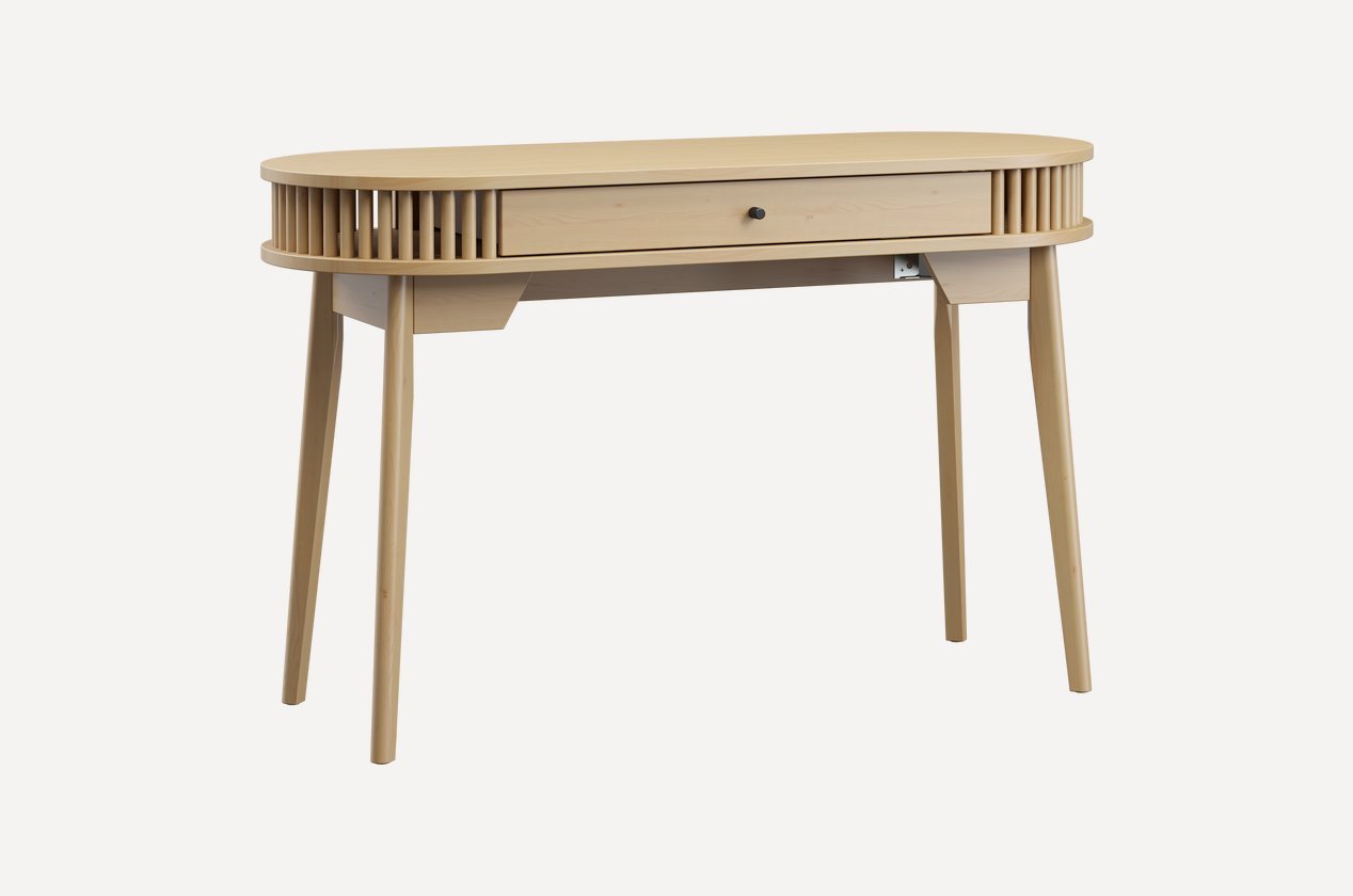 Функциональный письменный стол – не просто комбинация эргономичного рабочего места и вместительной системы хранения, но и отличное интерьерное решение для организации рабочей зоны. Его преимущество – широкая столешница, где удобно разместятся книги, документы, письменные принадлежности, а при необходимости – монитор компьютера или ноутбук. В тумбе с выдвижными ящиками найдут свое место папки с бумагами и литература, которую вы используете не так часто.