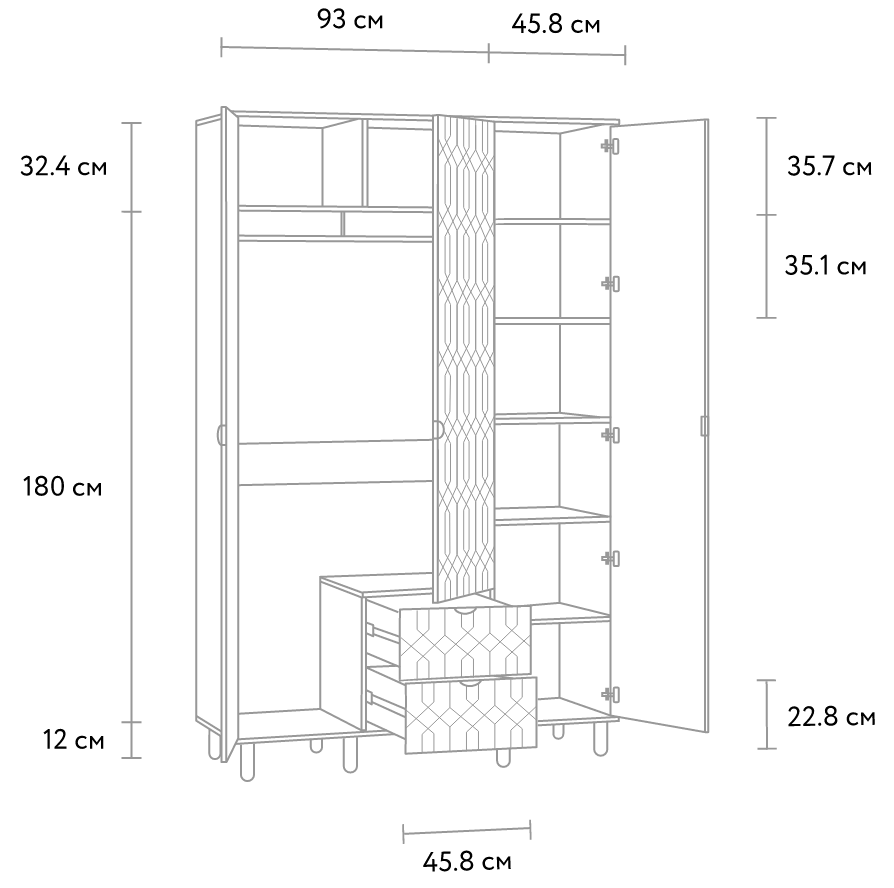 На дополнительных схемах указаны размеры полезного пространства системы хранения.
