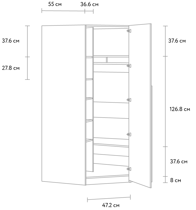 Угловой распашной шкаф Лорэна-90-55-210 Whitе доступен для покупки в рассрочку в интернет-магазине Divan.by с гарантией 18 месяцев